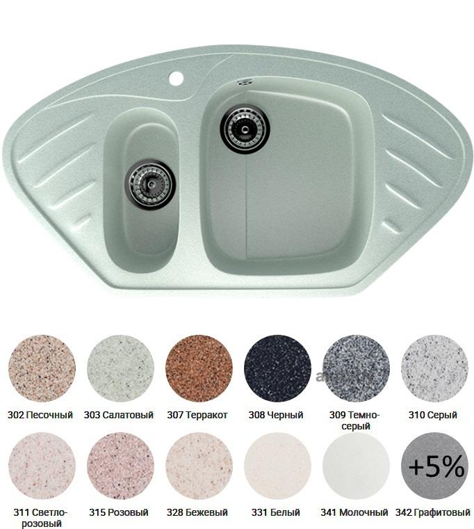 Угловая двухсекционная Мойка с отверстием под смеситель